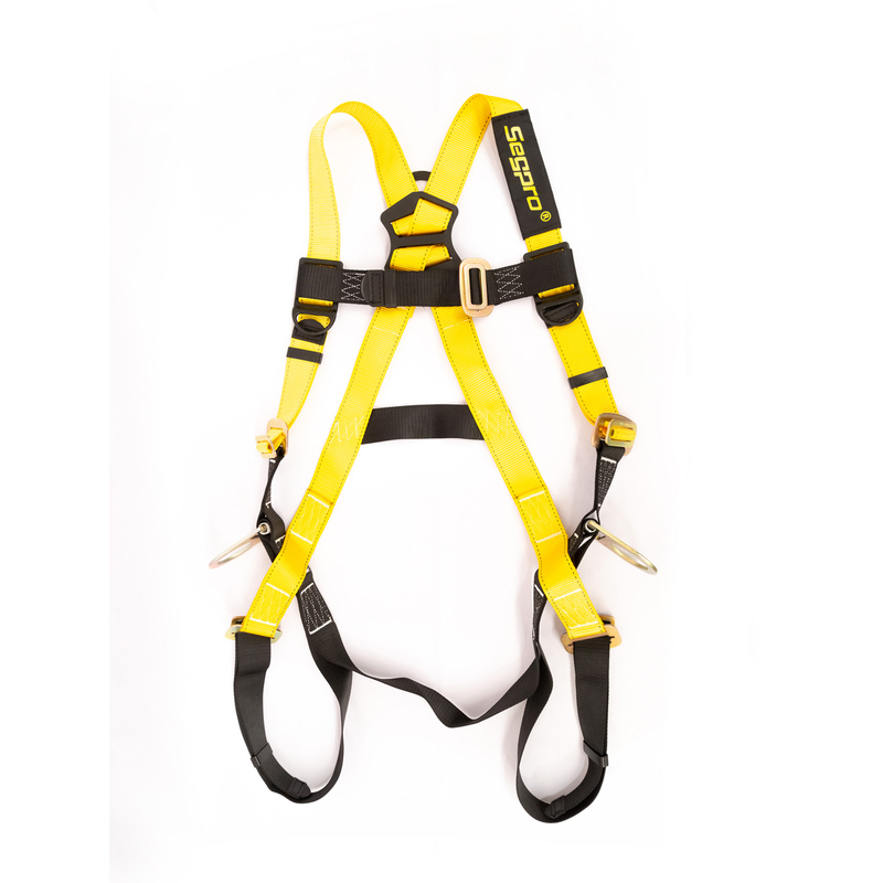 Arnés de seguridad marca Segpro con 3 anillos en D. Apto para detención de caídas, posicionamiento y desplazamientos verticales.