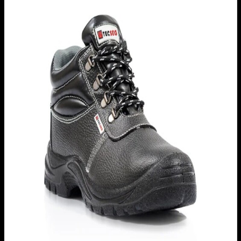 Botín de seguridad marca TECSEG con punta de acero, resistente y antideslizante. Ideal para trabajos pesados.